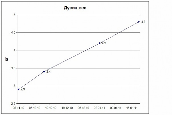 Вот фотки некоторые Дусины, в разное время сделаны, и график набора веса: