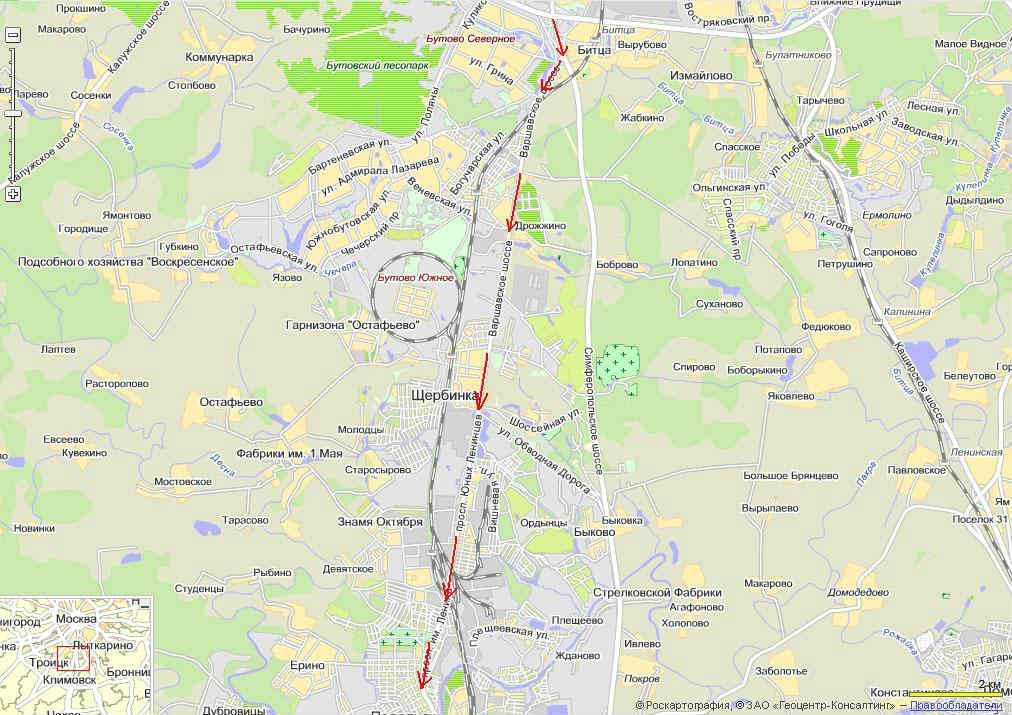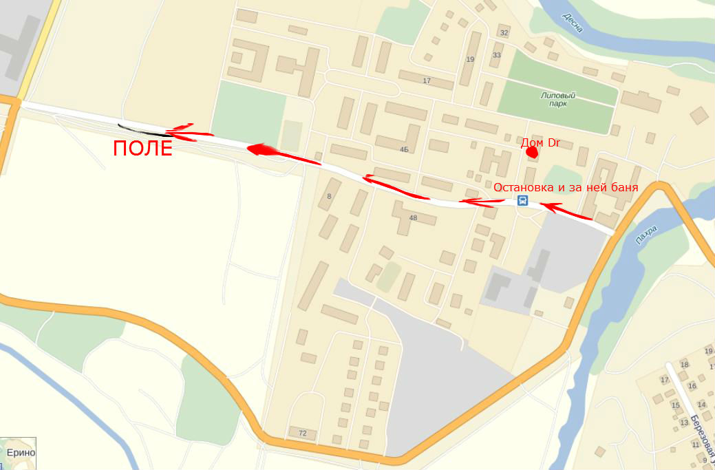 Akena: от зеленого дома Андрея налево потом направо и прямо до поля я помню) К универсаму через Красную Площадь   Едем через старое Варшавское шоссе
